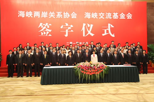 姜增伟副部长出席海协会与海基会在重庆举行的海峡两岸经济合作框架协议和两岸知识产权保护合作协议的正式商谈、签字仪式和记者会
