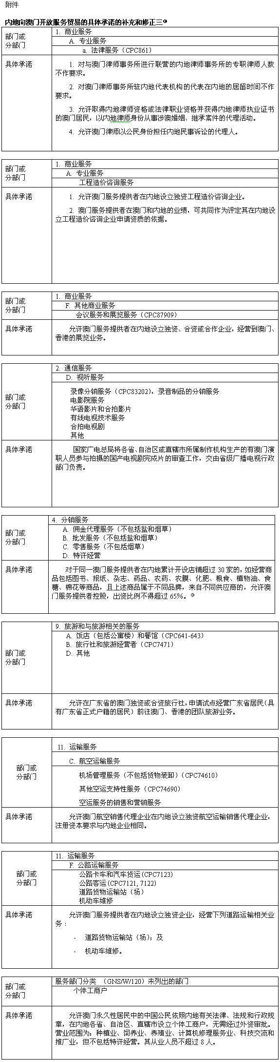 附件:内地向澳门开放服务贸易的具体承诺的补充和修正三