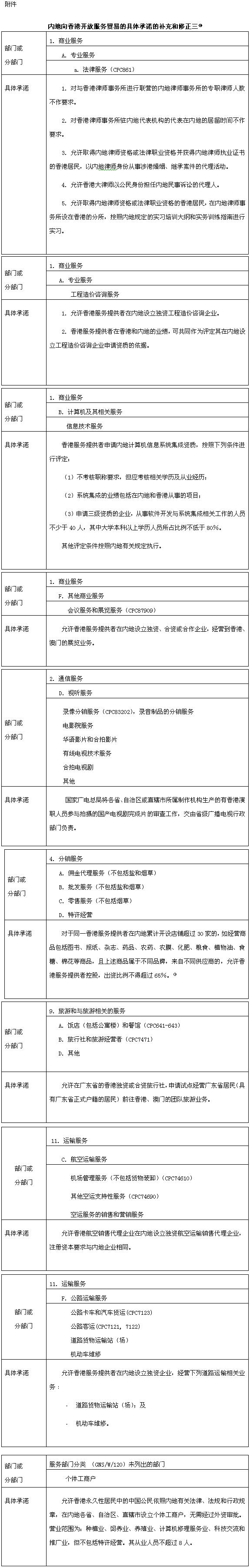 附件:内地向香港开放服务贸易的具体承诺的补充和修正三