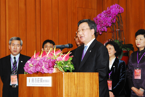 今天,我们在美丽的中坜南方庄园举行了由海协会和海基会召开的经合会第一次例会。本次例会受到了两岸人民高度关注,新闻界朋友作了大量报导,海基会的朋友作了周到安排,工作人员提供了热情的服务,我在此向你们的辛勤付出表示衷心感谢!同时,我也借此机会向广大台湾朋友致以诚挚的问候!